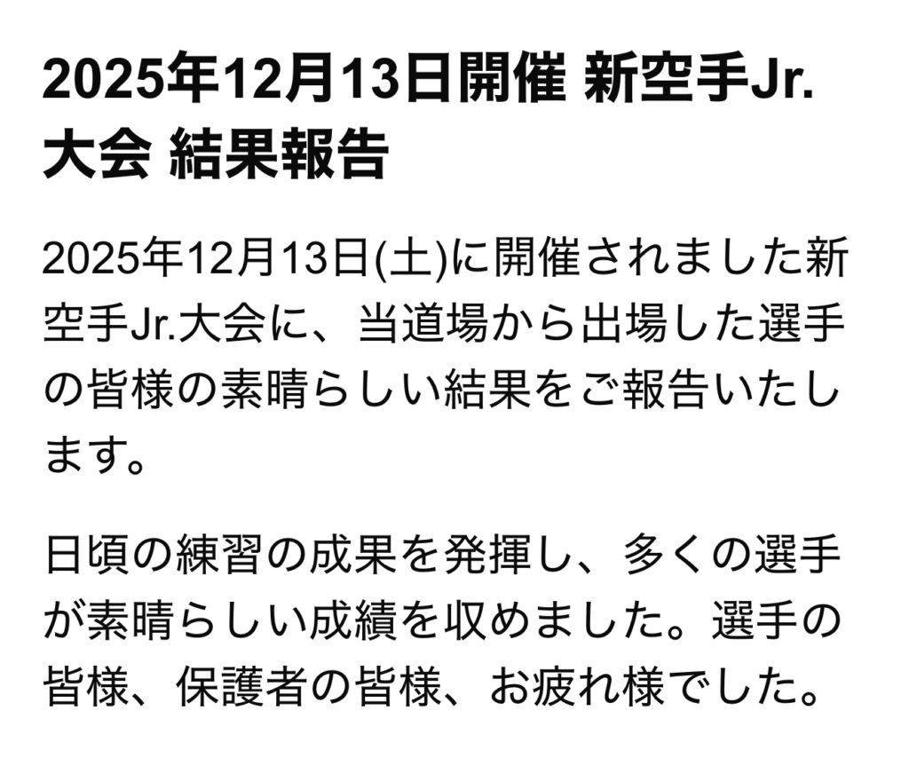 2025年12月13日開催 新空手Jr.大会 結果報告